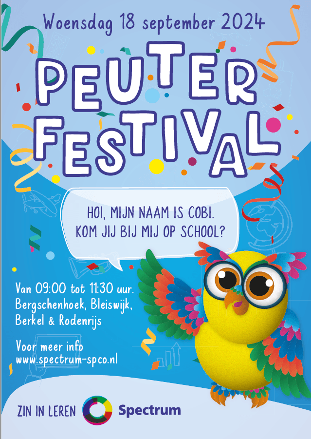 Ouders en kinderen (van 2-4 jaar), we hebben een geweldige ochtend vol plezier en activiteiten voor jullie gepland bij al onze scholen in Bergschenhoek, Berkel & Rodenrijs en Bleiswijk, van 9:00 tot 11:30 uur. Het wordt een ochtend vol ontdekkingen en avonturen, en we nodigen jullie van harte uit om deel te nemen aan de festiviteiten.